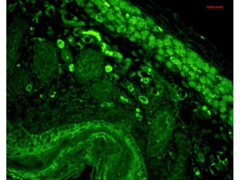 1 μg/ml of ABIN2481698 was sufficient for detection of CD74 in 20 μg of PALA cell lysates by colorimetric immunolot analysis using goat anti-mouse IgG: AP as the secondary antibody.