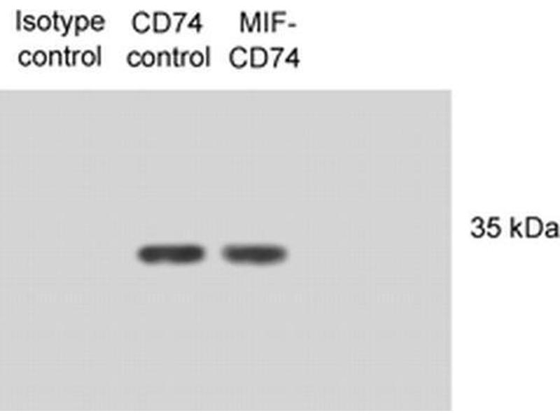 - Detects ~33-35 kDa protein doublet corresponding to the molecular mass of the p33 and p35 forms of human CD74.