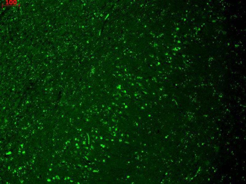 1 μg/ml of ABIN2482540 was sufficient for detection of HCN4 in 10 μg of COS cell lysate transiently transfected with HCN4 by colorimetric immunoblot analysis using Goat anti-mouse IgG:HRP as the secondary antibody.