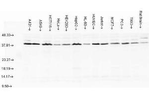 - Detects ~ 38 kDa.
