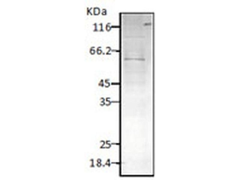 - Detects ~ 60 kDa. Cross-reacts with E.coli HSP60, GroEl.