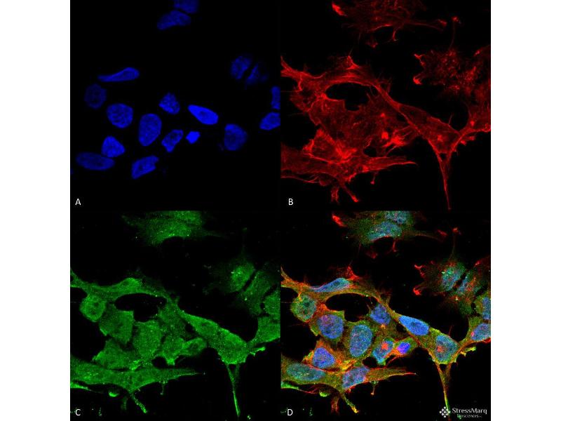 1 μg/ml of ABIN2485470 was sufficient for detection of Clcn3 in 20 μg of rat brain membrane lysate and assayed by colorimetric immunoblot analysis using goat anti-mouse IgG:HRP as the secondary antibody.