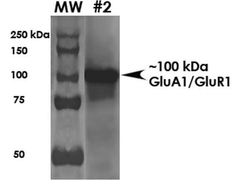 - Detects ~100 kDa. Does not cross-react with GluR2.