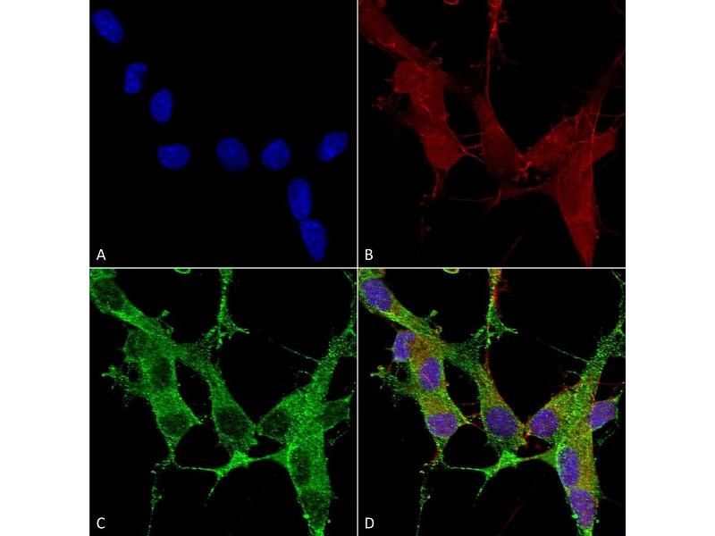 - Spectrin is the major constituent of the cytoskeletal network underlying the erthrocyte plasma membrane and determines cell shape, arrangement of transmembrane proteins and organization of organelles. It is expressed at very low levels in many tissues, with the strongest expression in the cerebellum, spinal cord, stomach, pituitary gland, liver, pancreas, salivary gland, kidney, bladder and heart (1). Spectrin beta 4 is a non-erythrocyte member, and is expressed in the brain and pancreatic islets and localisted to the nuclear matrix, cytoplasmic vesicles and PML nuclear bodies. Beta4 spectrins are also essential for membrane stability and the molecular organization of the nodes of Ranvier (2).