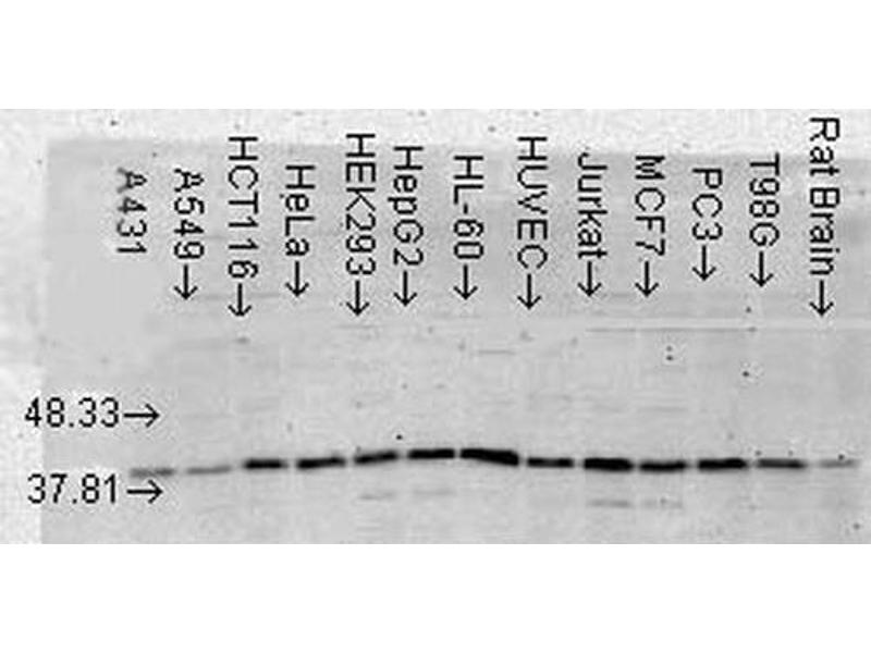 - Detects ~38 kDa.