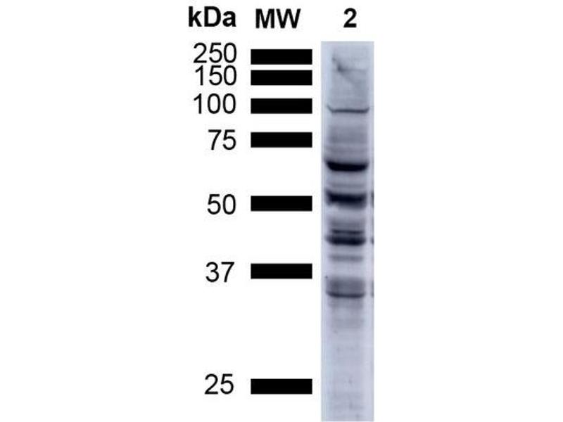 0.7 μg/ml of ABIN2486197 was sufficient for detection of 5 μg SIN-1 treated BSA by Western Blot analysis using Goat anti-mouse IgG:HRP as the secondary antibody.