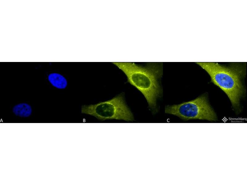 A 1:1000 dilution of ABIN2486639 was sufficient for detection of Rab4 in 10 μg of heat shocked HeLa cell lysate by colorimetric immunoblot analysis using Goat anti-rabbit IgG:HRP as the secondary antibody.