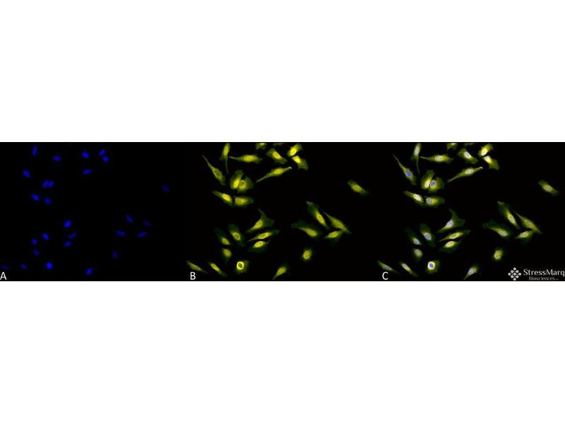 A 1:1000 dilution of ABIN2486723 was sufficient for detection of Calreticulin in 20 μg of HeLa cell lysate by ECL immunoblot analysis.