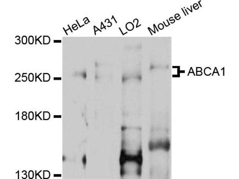 The Rabbit Polyclonal anti-ABCA1 antibody has been validated for WB. It is suitable to detect ABCA1 in samples from Mouse, Human and Rat.