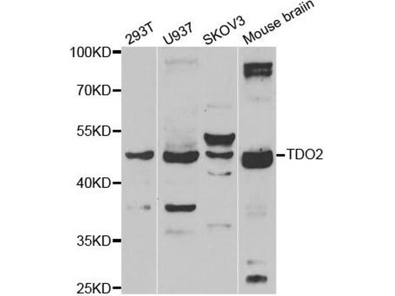 The Rabbit Polyclonal anti-TDO2 antibody has been validated for WB and IHC. It is suitable to detect TDO2 in samples from Human.