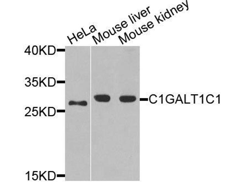 The Rabbit Polyclonal anti-C1GALT1C1 antibody has been validated for WB. It is suitable to detect C1GALT1C1 in samples from Human.