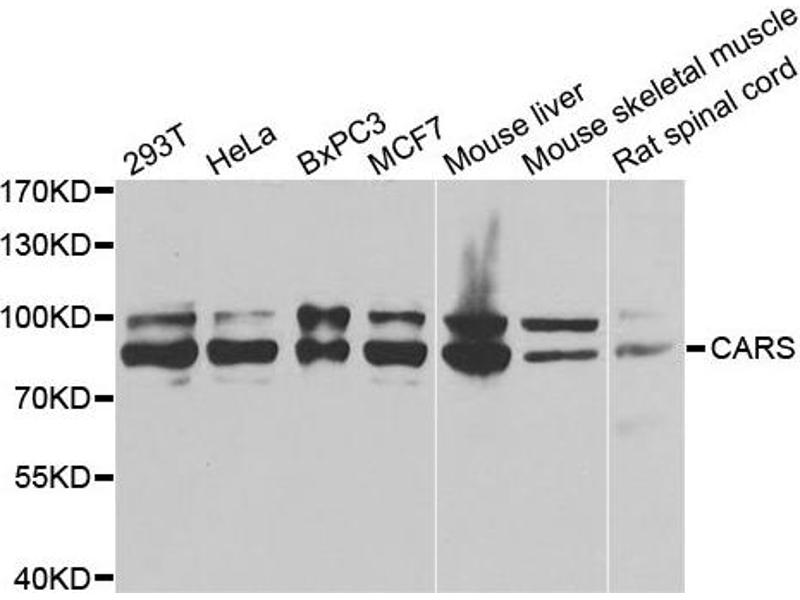 The Rabbit Polyclonal anti-CARS antibody has been validated for WB and IHC. It is suitable to detect CARS in samples from Human.