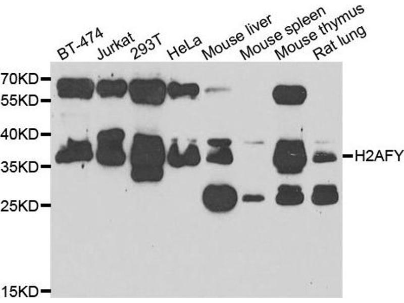 This anti-H2AFY antibody is a Rabbit Polyclonal antibody detecting H2AFY in WB, IHC and IF. Suitable for Human, Rat and Mouse.