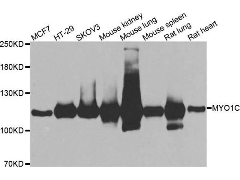The Rabbit Polyclonal anti-Myosin IC antibody has been validated for WB, IHC and IF. It is suitable to detect Myosin IC in samples from Human.