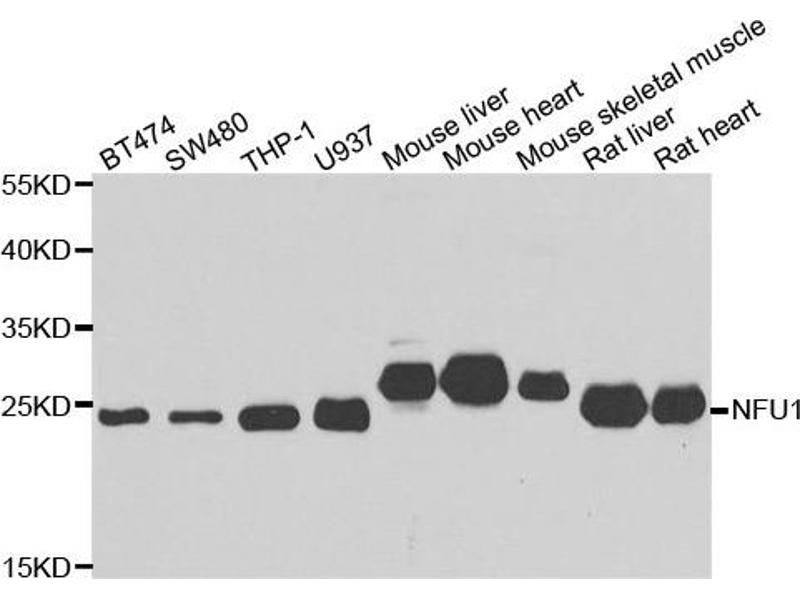 This anti-NFU1 antibody is a Rabbit Polyclonal antibody detecting NFU1 in WB and IHC. Suitable for Human, Mouse and Rat.