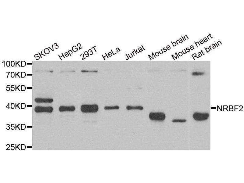 The Rabbit Polyclonal anti-NRBF2 antibody has been validated for WB and IHC. It is suitable to detect NRBF2 in samples from Human.