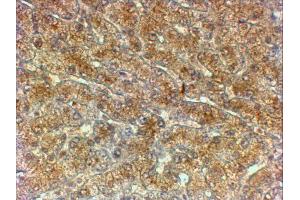 Immunohistochemistry: In paraffin embedded Human Liver shows textured cytoplasm staining in the hepatocytes. Recommended concentration, 2-4 μg/mL.