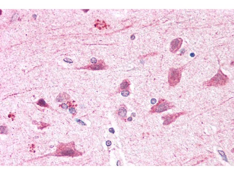 Immunohistochemistry: Paraffin embedded Human Brain (Cortex) and Skin. Recommended concentration: 5 μg/mL.