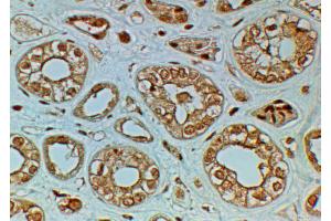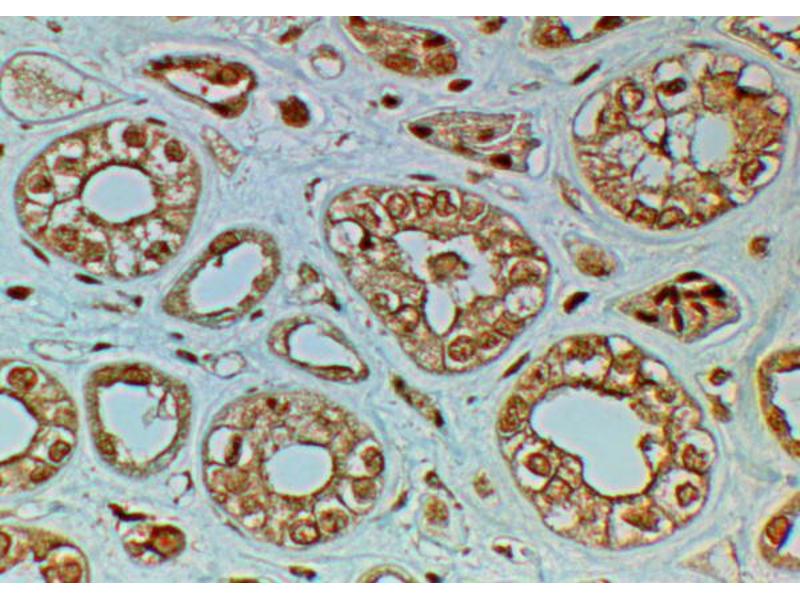 Immunohistochemistry: In paraffin embedded Human Kidney shows membrane staining in convoluted tubules. Recommended concentration, 2-4 μg/mL.