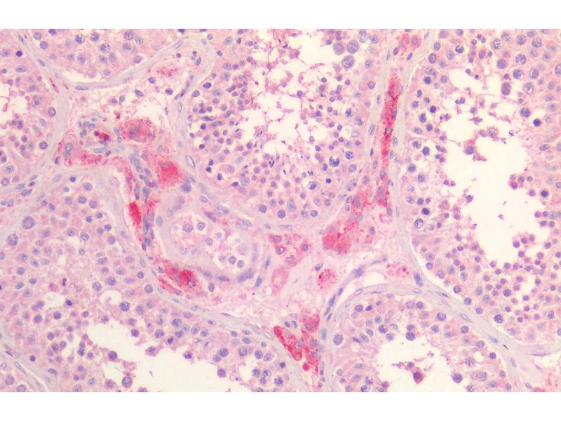 Immunohistochemistry: Paraffin embedded Human Testis. Recommended concentration: 5 μg/mL.