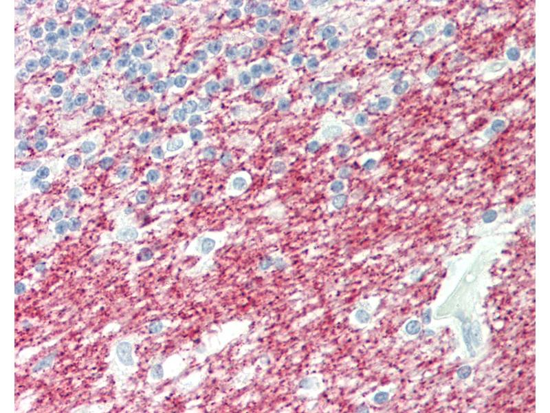 Synthetic peptide contain a sequence corresponding to a region within amino acids 163 and 174 of MOG (SwissProt Q16653). Percent identity by BLAST analysis: Human (100%), Mouse, Rat, Rhesus monkey, Bovine (92%).