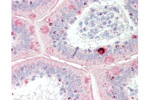 Synthetic peptide located between aa553-602 of human MYBL1. Percent identity by BLAST analysis: Human, Chimpanzee, Gorilla, Monkey, Galago, Marmoset, Mouse, Rat, Elephant, Panda, Dog, Bovine, Bat, Rabbit, Horse, Pig, Opossum, Guinea pig, Chicken, Platypus, Seabass, Stickleback (100%), Zebra finch, Lizard, Zebrafish (92%).