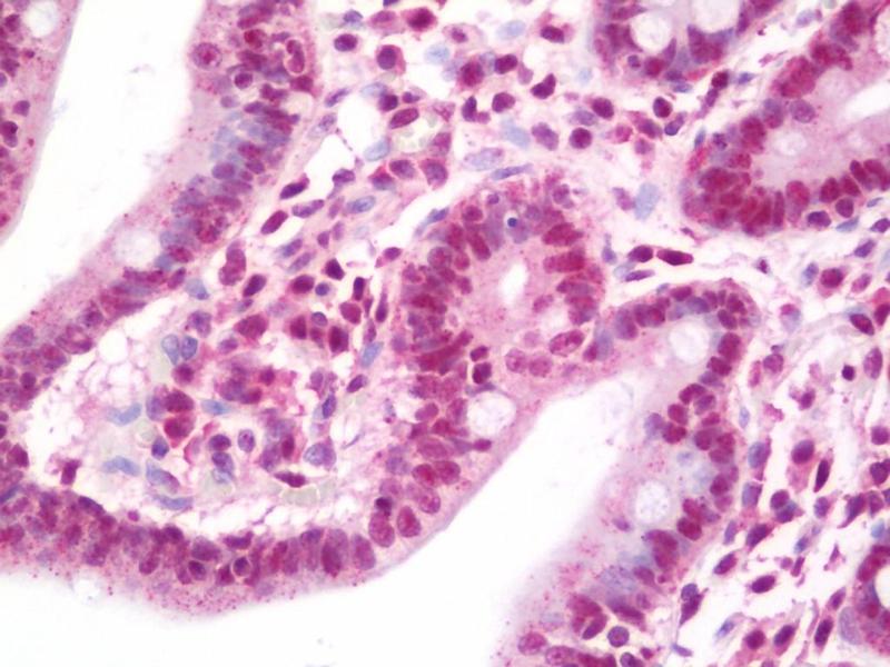Usage: Immunohistochemistry: Antigen retrieval is recommended. Antigen retrieval with citrate buffer will enhance staining. Likely to work with frozen sections. In some cases, the antibody may be diluted further than indicated. Human controls: Breast Carcinoma, Non-Small Cell Lung Cancer, Ovarian Carcinoma, Placenta, Prostate Carcinoma, Skin Squamous Cell Carcinoma, Testicular Seminoma. -