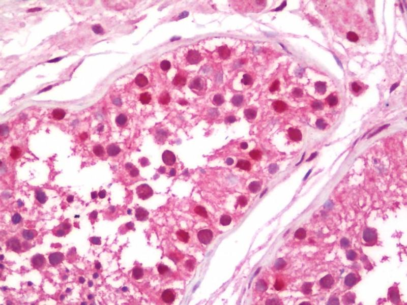 Usage: Immunohistochemistry: Antigen retrieval is recommended. Antigen retrieval with citrate buffer will enhance staining. Likely to work with frozen sections. In some cases, the antibody may be diluted further than indicated. Human controls: Breast Carcinoma, Colon Carcinoma, Non-Small Cell Lung Cancer, Ovarian Carcinoma, Prostate Carcinoma, Small Cell Lung Cancer, Stomach Adenocarcinoma. -