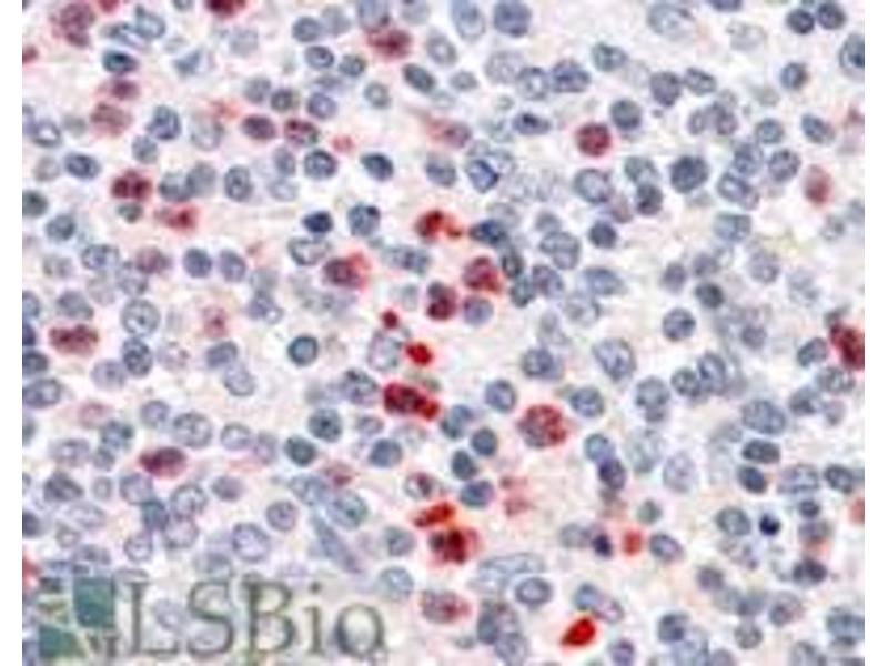 Immunohistochemistry: In paraffin embedded Human Spleen shows staining of select splenocytes. Recommended concentration, 3-6 μg/mL.
