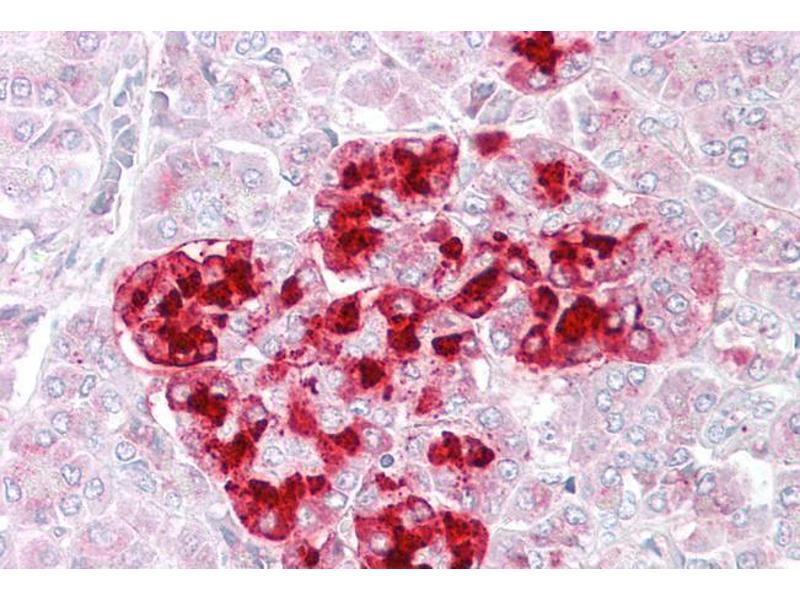 Immunohistochemistry: Paraffin embedded Human Tonsil and Pancreas. Recommended concentration: 2.5 μg/mL.