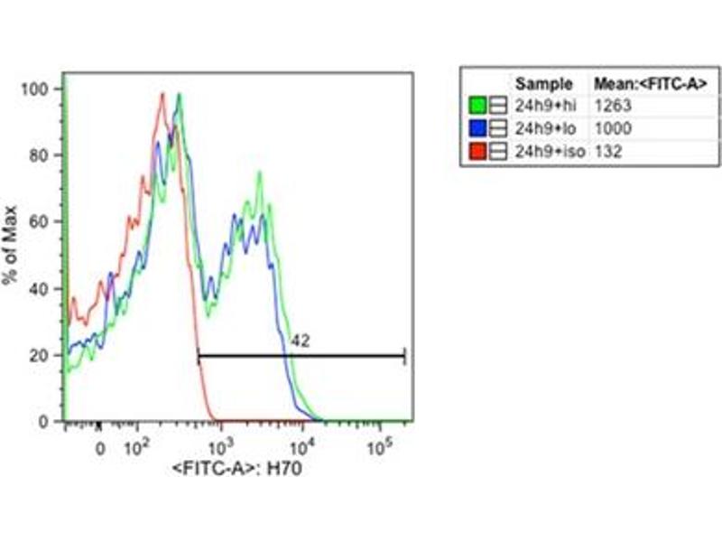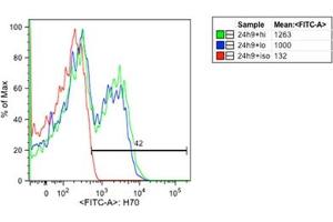 This Mouse Monoclonal antibody specifically detects HSP70 in FACS. It exhibits reactivity toward Human, Mouse, Rat, Chicken, Drosophila melanogaster, Cow, Pig, Monkey, Dog, Hamster, Sheep, Guinea Pig, Rabbit and Carp. It has been mentioned in 9+ publications