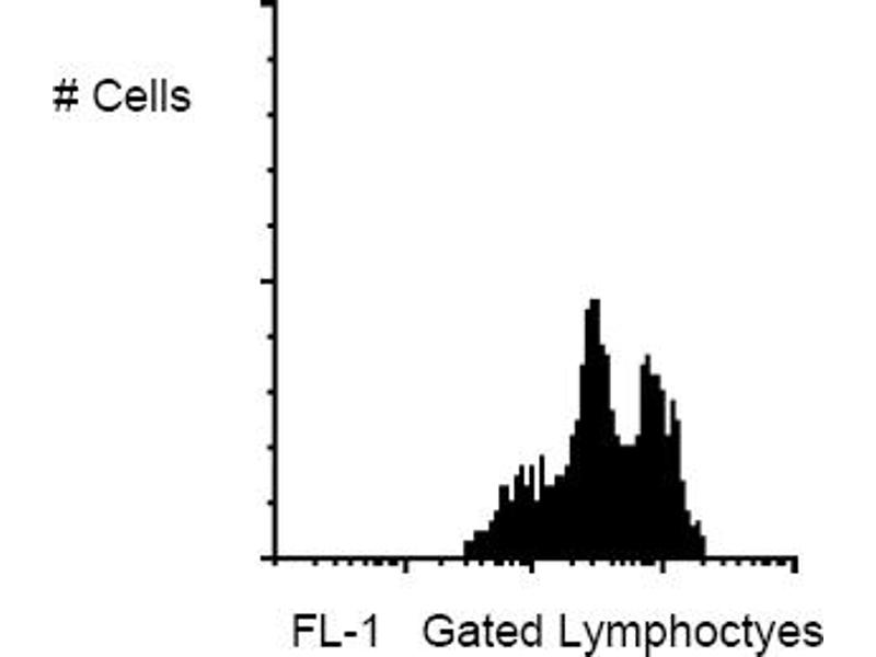 PBMC: Add 10 ul of MAB/10e6 PBMC in 100 ul PBS. Mix gently and incubate for 15 minutes at 2-8°C. Wash twice with PBS and analyze or fix with 0. 5% v/v of paraformaldehyde in PBS andanalyze. WHOLE BLOOD: Add 10 ul of MAB/100 ul of whole blood. Mix gently and incubate for 15 minutes at room temperature (20°C). Lyse the whole blood. Wash once with PBS and analyze or fix with 0. 5% v/v of paraformaldehyde in PBS andanalyze. See instrument manufacturers instructions for Lysed Whole Blood andImmunofluorescence analysis with a flow cytometer or microscope.