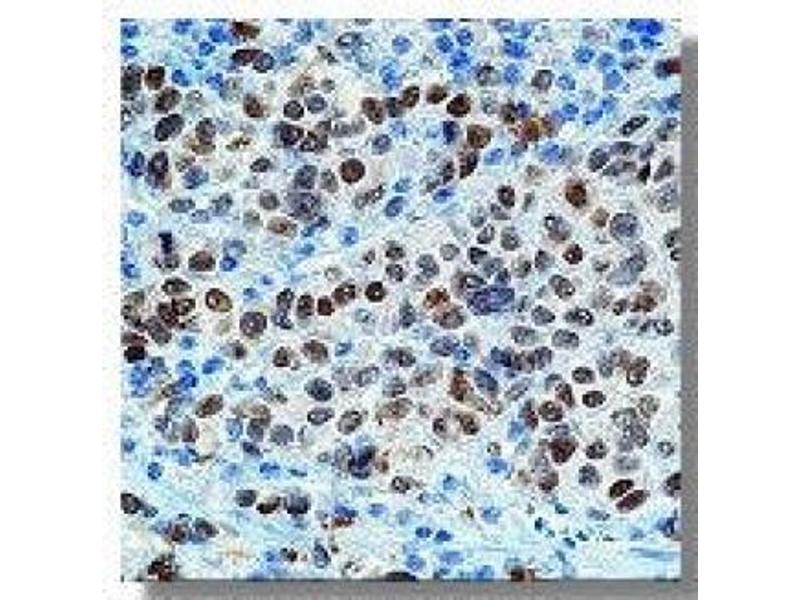 There are two known isoforms of MiTF differing by 66 amino acids at the NH2 terminus. Shorter forms are expressed in melanocytes and run as two bands at 52 kDa and 56 kDa, while the longer Mi form runs as a cluster of bands at 60-70 kDa in osteoclasts and in B16 melonoma cells (but not other melanoma cell lines), as well as mast cells and heart. It reacts with both melanocytic as well as the non- melanocytic isoforms of MiTF. Mi is a basic helix-loop-helix-leucin zipper (b-HLH-ZIP) transtripotion factor implicated in pigmentation, mast cells and bone development. The mutation of MiTF causes Waardenburg Syndrome type II in humans. In mice, a profound loss of pigmented cells in the skin eye and inner ear results, as well as osteopetrosis and defects in natural killer and mast cells. These melanocyte isoforms have been shown by two dimensional tryptic mapping to differ in c-Kit-induced phosphorylation. Osteopetrotic rat strain harbors a large genomic deletion encompassing the 3Synonyms: Mi-protein, Microphthalmia-associated transcription factor
