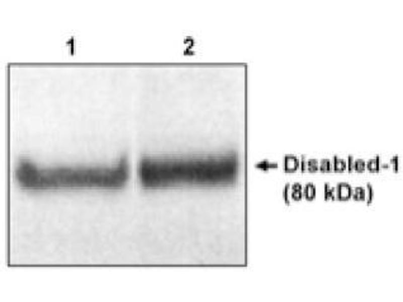 Disruption of the disabled-1 gene (Dab1) results in aberrant migration of neurons during development and disorganization of laminar structures throughout the brain. Dab1 is thought to function as an adaptor molecule in signal transduction processes. It contains a protein-protein interaction (PI) similar to the phosphotyrosine binding domain of the Shc oncoprotein, it is phosphorylated by the Src protein tyrosine kinase, and it binds to SH2 binding domains in a phosphotyrosine dependent manner. Disabled-1 acts downstream of reelin in a signalling pathway.Synonyms: Disabled homolog 1