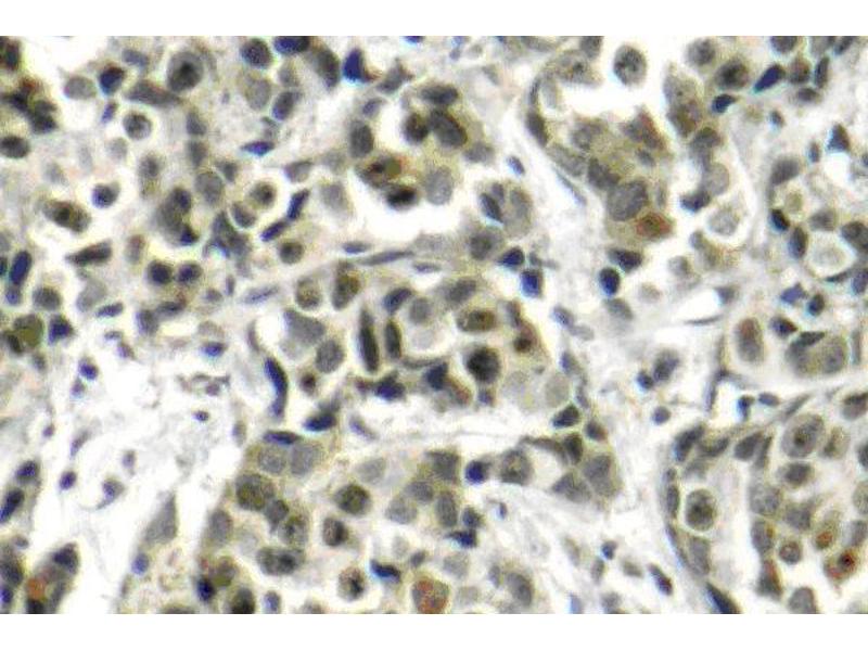 BRCA1 (breast and ovarian cancer susceptibility protein 1) is a nuclear phosphoprotein that plays a role in maintaining genomic stability and acts as a tumor suppressor. It combines with other tumor suppressors, DNA damage sensors, and signal transducers to form a large multi-subunit protein complex known as BASC (for BRCA1 associated genome surveillance complex). BRCA1 associates with RNA polymerase II, and through the C terminal domain, also interacts with histone deacetylase complex. This protein thus plays a role in transcription, DNA repair of double-stranded breaks, and recombination. Mutations in the BRCA1 gene are responsible for approximately 40 % of inherited breast cancers and more than 80 % of inherited breast and ovarian cancers. Alternative splicing plays a role in modulating the subcellular localization and physiological function of this gene. Many alternatively spliced transcript variants have been described for this gene but only some have had their full length natures identified.Synonyms: Breast cancer type 1 susceptibility protein, RING finger protein 53