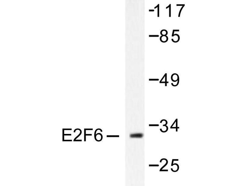 The human retinoblastoma gene product appears to play an important role in the negative regulation of cell proliferation. Functional inactivation of Rb can be mediated either through mutation or as a consequence of interaction with DNA tumor virus encoded proteins. Of all the Rb associations described to date, the identification of a complex between Rb and the transcription factor E2F most directly implicates Rb in regulation of cell proliferation. E2F was originally identified through its role in transcriptional activation of the adenovirus E2 promoter. Sequences homologous to the E2F binding site have been found upstream of a number of genes that encode proteins with putative functions in the G1 and S phases of the cell cycle. E2F-1 is a member of a broader family of transcriptional regulators including E2F-2, E2F-3, E2F-4, E2F-5 and E2F-6, each of which forms heterodimers with a second protein, DP-1, forming an Synonyms: E2F transcription factor 6, E2F-6, MGC111545, Transcription factor E2F6