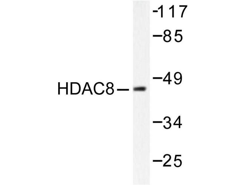 In the intact cell, DNA closely associates with histones and other nuclear proteins to form chromatin. The remodeling of chromatin is believed to be a critical component of transcriptional regulation and a major source of this remodeling is brought about by the acetylation of nucleosomal histones. Acetylation of lysine residues in the amino terminal tail domain of histone results in an allosteric change in the nucleosomal conformation and an increased accessibility to transcription factors by DNA. Conversely, the deacetylation of histones is associated with transcriptional silencing. Several mammalian proteins have been identified as nuclear histone acetylases, including GCN5, PCAF (p300/CBP-associated factor), p300/CBP, HAT1 and the TFIID subunit TAF II p250. Mammalian HDAC8, isolated from human kidney, is a histone deacetylase that shares homology to other HDACs but has different tissue distribution. HDAC8 is localized to the nucleus and plays a role in the development of a broad range of tissues and in the etiology of cancer.Synonyms: CDA07, HD8, HDACL1, Histone deacetylase 8