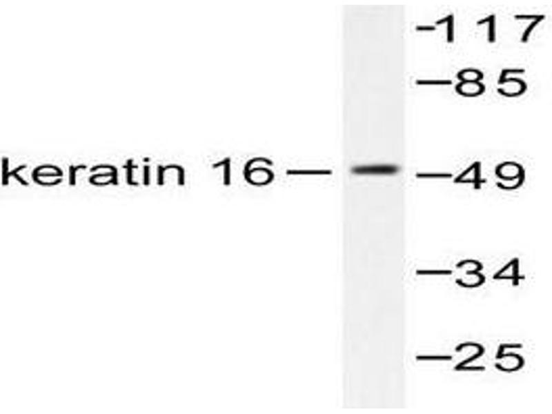 This Rabbit Polyclonal antibody specifically detects KRT16 in WB, IHC (p) and EIA. It exhibits reactivity toward Human, Mouse and Rat. It has been mentioned in 3+ publications