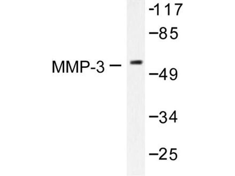 Proteins of the matrix metalloproteinase (MMP) family are involved in the breakdown of extracellular matrix in normal physiological processes, such as embryonic development, reproduction, and tissue remodeling, as well as in disease processes, such as arthritis and metastasis. Most MMP's are secreted as inactive proproteins which are activated when cleaved by extracellular proteinases. MMP3 is an enzyme which degrades fibronectin, laminin, collagens III, IV, IX, and X, and cartilage proteoglycans. The enzyme is thought to be involved in wound repair, progression of atherosclerosis, and tumor initiation. MMP3 is reported to be implicated in rheumatoid arthritis and some forms of cancer.Synonyms: MMP3, Matrix metalloproteinase-3, SL-1, STMY1, Stromelysin-1, Transin-1