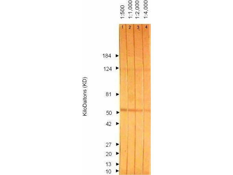 - Western Blotting: > 1:4.000. Immunofluorescence: 1+ at 1:12.800. ELISA: 0.100 at 1:102.400