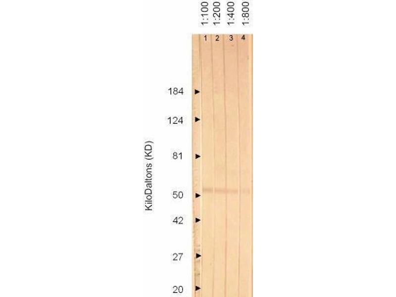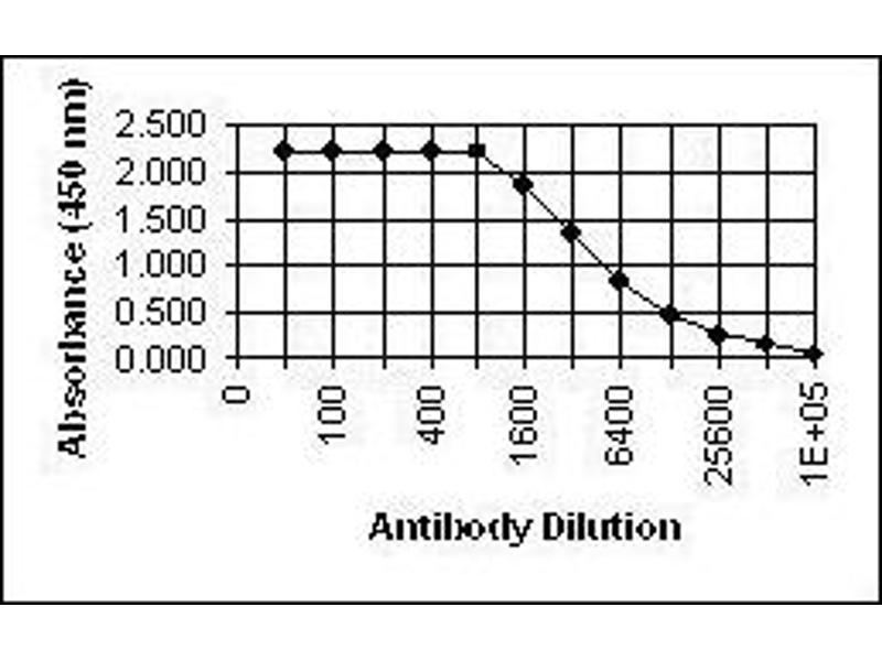 Immunofluorescence: 1+ at 1:1.600. ELISA: 0.100 at 1:51.200. Western Blotting: >1:400