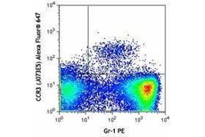 CD193, also known as CC-chemokine receptor 3 (CCR3), CC CKR3, MIP1-α receptor like-2, and eotaxin receptor, is a member of the G protein-coupled, seven transmembrane receptor family. It binds to the CC chemokines eotaxin, eotaxin-2, and eotaxin-3 with high affinity. CD193 has also been reported to bind RANTES, MCP-3, and MCP-4 with low affinity. CD193 is expressed on mouse eosinophils, basophils, mast cells, mononuclear phagocytes, platelets, hematopoietic progenitor cells, and keratinocytes. It is thought to play a role in allergic diseases such as bronchial asthma and allergic rhinitis. CD193 also function as a co-receptor for HIV-1 and HIV-2, and the binding of eotaxin with CD193 has been shown to inhibit HIV infection in some cell types.