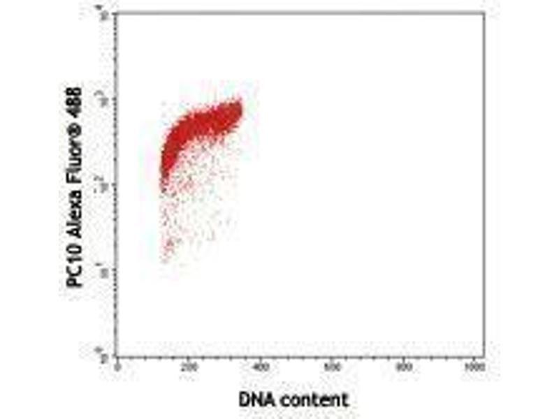 The PC10 monoclonal antibody reacts with proliferating cell nuclear antigen also known as PCNA or the DNA polymerase δ auxiliary protein. PCNA is a 36 kD trimeric ring that acts as a DNA-polymerase sliding clamp expressed in the nucleus of all proliferating cells. A prime function of PCNA appears to be increasing DNA polymerase δ processibility during elongation of the leading strand. PCNA is a useful marker for DNA synthesis and is highly conserved among most species, thus highlighting the very broad reactivity of this antibody.