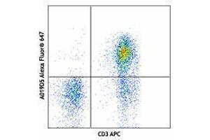 CD127 is a 60-90 kD type I transmembrane glycoprotein also known as IL-7 receptor α chain or IL-7Rα. It forms a heterodimer with the common γ chain (γc or CD132) which is shared with the receptors for IL-2, IL-4, IL-9, IL-13, IL-15, and IL-21. CD127 is expressed on immature B cells through early pre-B stage cells, thymocytes (except CD4/CD8 double positive thymocytes), peripheral T cells, and bone marrow stromal cells. CD127 has been reported to be a useful marker for identifying memory and effector T cells. Studies have shown that CD127 expression is down-modulated on Treg cells. It can be used as a marker for differentiation of Treg and conventional T cells. The ligation of IL-7 with its receptor is important for stimulation of mature and immature T cells as well as immature B cell proliferation and development.