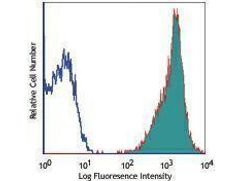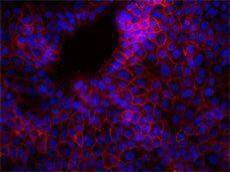 CD326 is also known as Ep-CAM, tumor associated calcium signal transducer 1, epithelial cell surface antigen, epithelial glycoprotein 2, EGP2, adenocarcinoma associated antigen, and TROP1. CD326 is a type I transmembrane protein containing six disulfide bridges and one THYRO domain. This cell surface glycosylated 40 kD protein is highly expressed in bone marrow, colon, lung, and most normal epithelial cells and is expressed on carcinomas of gastrointestinal origin. Recently, it has been reported that CD326 expression occurs during the early steps of erythrogenesis. CD326 functions as a homotypic calcium-independent cell adhesion molecule and is believed to be involved in carcinogenesis by its ability to induce genes involved in cellular metabolism and proliferation. CD326 antigen is an immunotherapeutic target for the treatment of human carcinomas.