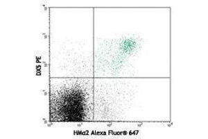 CD49b is a 150 kD glycoprotein, also known as α2 integrin, VLA-2 α chain, Integrin α2 chain, and HMα2. It is a member of the integrin family, expressed on NK cells, a subset of splenic CD4+ T cells, NK-T cells, intestinal intraepithelial and lamina propria lymphocytes, epithelial cells, and platelets. By associating with CD29 (integrin β1 subunit), CD49b forms the VLA-2 (integrin α2β1 ) complex. It plays a critical role in both adhesion and lymphocyte activation. The primary ligands for CD49b are collagen, laminin, and fibronectin. The HMα2 antibody has been shown to be useful for partially blocking CD49b mediated interactions with collagen. Additionally, this antibody blocks staining of splenic NK cells by the monoclonal antibody DX5.