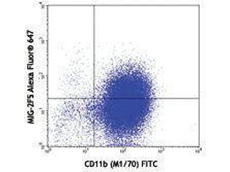 The Alexa Fluor 647-conjugated Armenian Hamster Monoclonal anti-CXCL9 antibody (Clone MIG-2F5-5) (ABIN2657882) specifically detects CXCL9 in FACS.