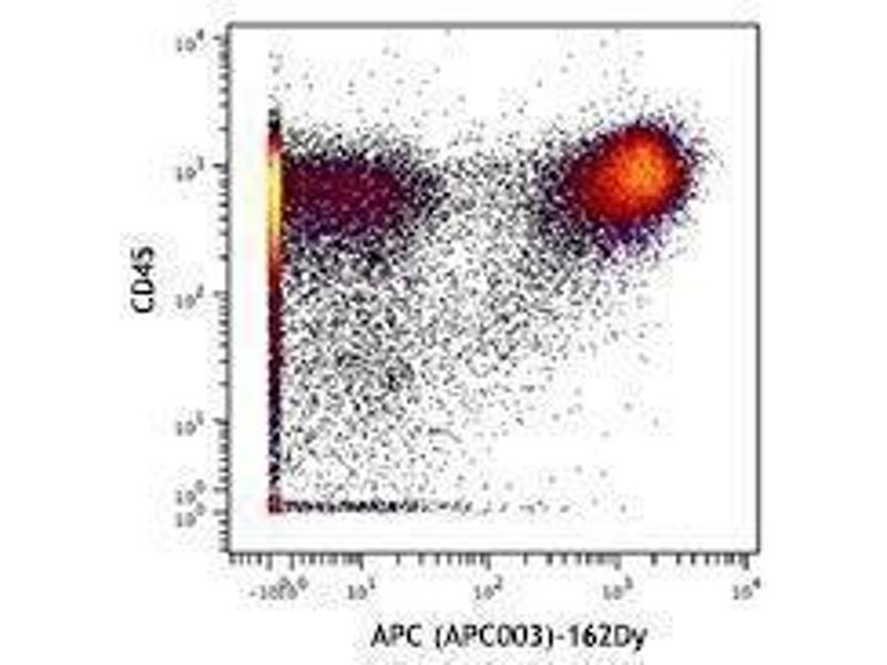 The APC003 antibody reacts with both allophycocyanin (APC) alone and APC conjugated with antibody or streptavidin, as well as APC tandem dyes such as APC/Cy5.5 and APC/Cy7. When APC003 antibody is used in a three-step staining procedure or separation of APC-antibody labelled cells, it neither quenches APC fluorescence nor reacts with tested mouse and human cells. The APC003 antibody can be used for separation of APC-antibody labeled cells or as a secondary step to amplify APC conjugated primary antibody signals (i.e. biotinylated APC003 as secondary step, followed by Streptavidin-APC).