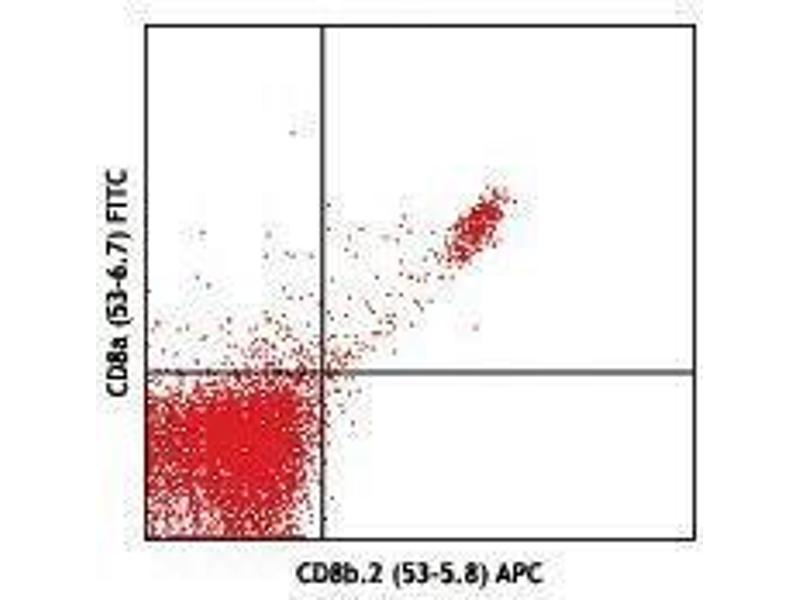 CD8b is the 32 kD β chain of CD8, also known as Lyt-3.2 or Ly-3.2. It is a member of the Ig superfamily expressed as a heterodimer with the CD8α chain on a subset of MHC class I-restricted T cells and most thymocytes. CD8 is a co-receptor for the TCR complex involved in T cell activation. The antibody 53-5.8 is specific for Ly-3.2 and has low reactivity with Ly-3.1.