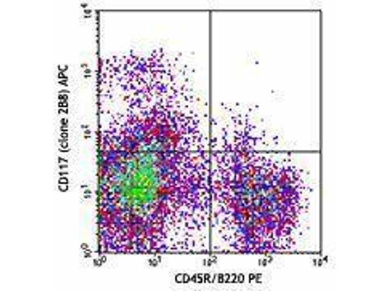 CD117 is a 145 kD immunoglobulin superfamily member also known as c-Kit and stem cell factor receptor (SCFR). It is a transmembrane tyrosine-kinase receptor that binds the c-Kit ligand (also known as steel factor, stem cell factor, and mast cell growth factor). CD117 is expressed on hematopoietic stem cells (including multipotent hematopoietic stem cells, progenitors committed to myeloid and/or erythroid lineages, and T and B cell precursors), mast cells, and acute myeloid leukemia (AML) cells. CD117 interaction with its ligand is critical for the development of hematopoietic stem cells.
